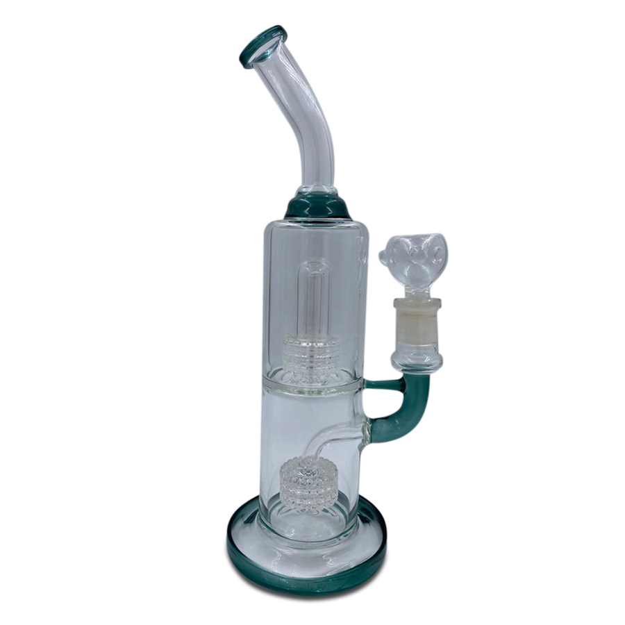 BONG BITONO DOBLE PERCOLADOR CRISTAL HIELO, QUEMADOR MACHO DE 18